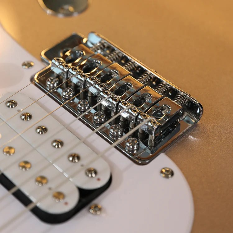 Customized double-wire alloy presser clasp 2pcs, provide enough downward pressure to avoid the noise caused by the string and upper saddle groove not tight enough contact also can ensure good sustain when playing open strings.