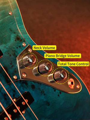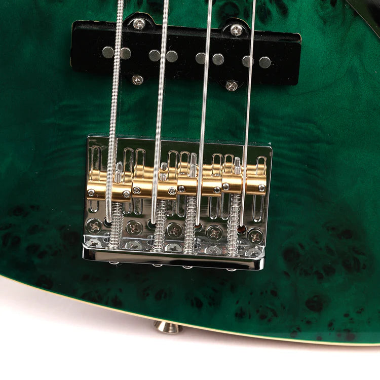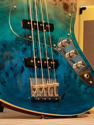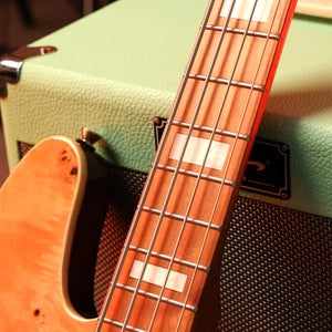 The body offers a bright and solid tone with a unique burl veneer with a gorgeous and varied texture that makes each bass unique.