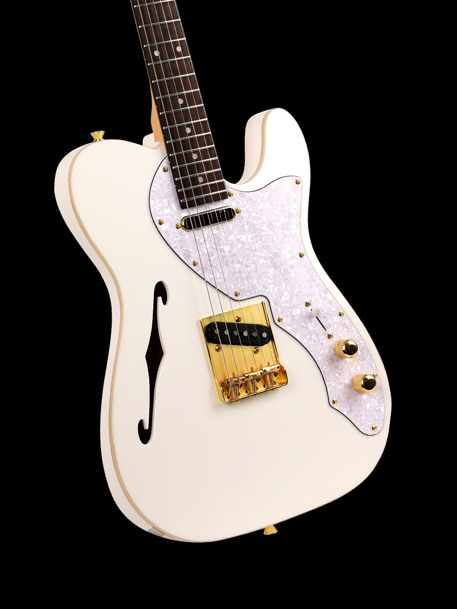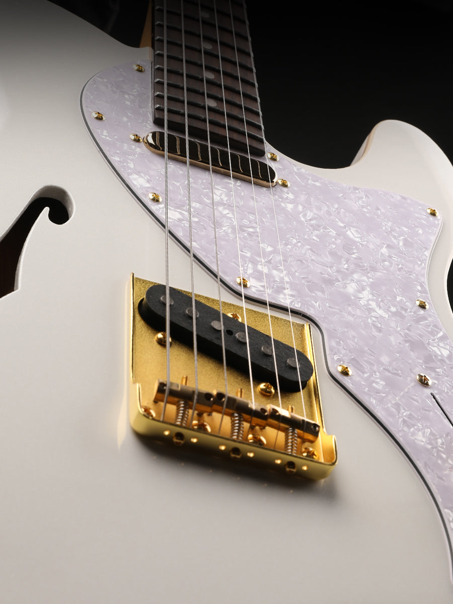The fully hollow body design combined with elegantly bound f-holes enhances natural acoustic resonance while maintaining clarity and control. This construction adds depth, openness, and a rich harmonic response to every note.