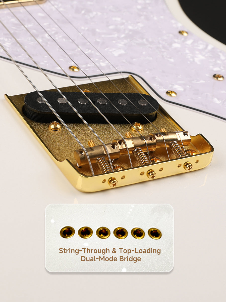 - Top-Load: Reduces the break angle, resulting in lower string tension—perfect for players who love effortless bends and a softer, vintage feel.